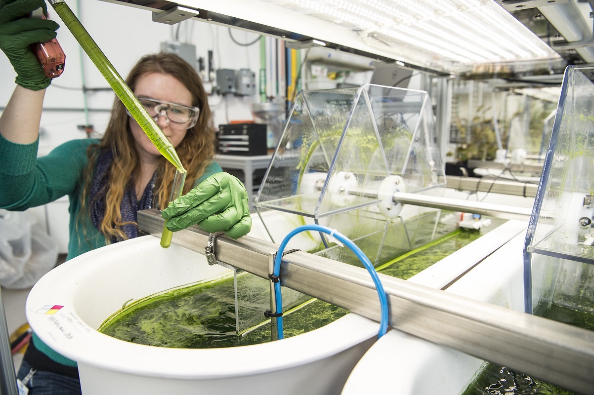 Algae can be very small (microalgae) and consist of only one cell, but they can also be huge and up to 100 m long (macroalgae, especially brown algae). Like “higher” plants, they also produce oxygen and therefore contribute significantly to the binding of atmospheric carbon dioxide. Algae can be found in fresh water, salt water and also in moist soils. Millions of years ago, blue-green algae or cyanobacteria helped to produce oxygen in sufficient quantities for life to develop. In addition to the food and cosmetics industry, algae can also be used as fertiliser in agriculture. However, algae, especially microalgae, can also be used to produce energy (biogas, biodiesel, bioethanol and hydrogen). Algae can be cultivated either in natural ecosystems, in aquacultures or in photobioreactors.