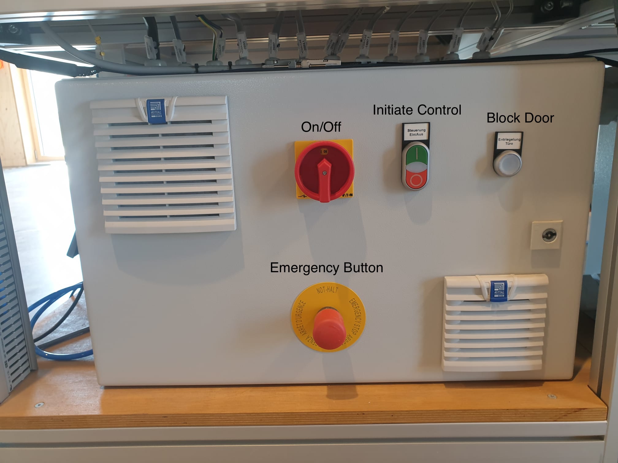 Next, we connect the Gast1 laptop to the machine, turn on the CNC machine and initiate Control. If the doors of the CNC machine are blocked, we for now release them by using the button in the CNC control panel too.